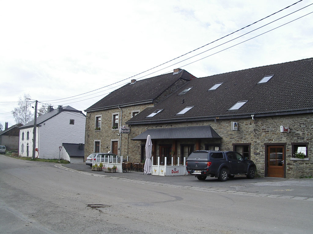 Une table de pique-nique en bordure de route à l’est du village, non loin de l’Ourthe Occidentale.