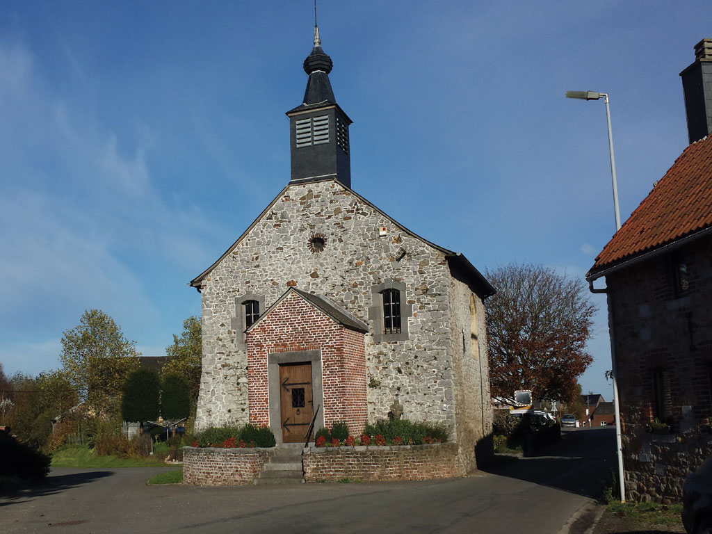 Chapelle datée de 1852, appartenait au moulin sis non loin, construite en moellon blanchis, fermée par un petite grille en fer forgé. Toiture en ardoise