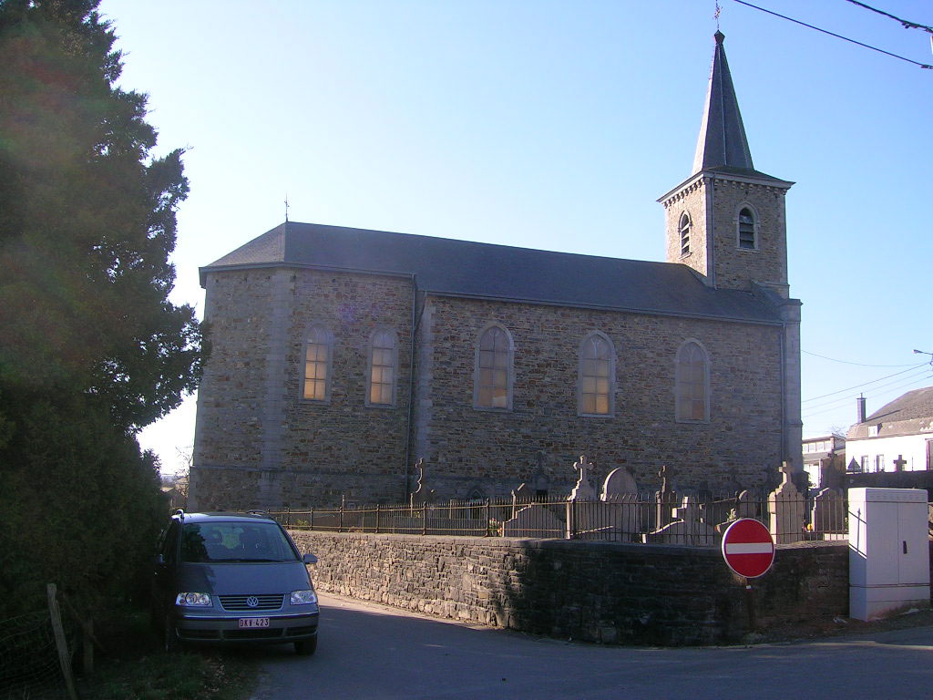 Deze kerk in neogotische stijl, gemaakt van schistose zandsteenpuin en kalksteen, werd in 1891 (vintage) gebouwd volgens de plannen van architect Verhas.