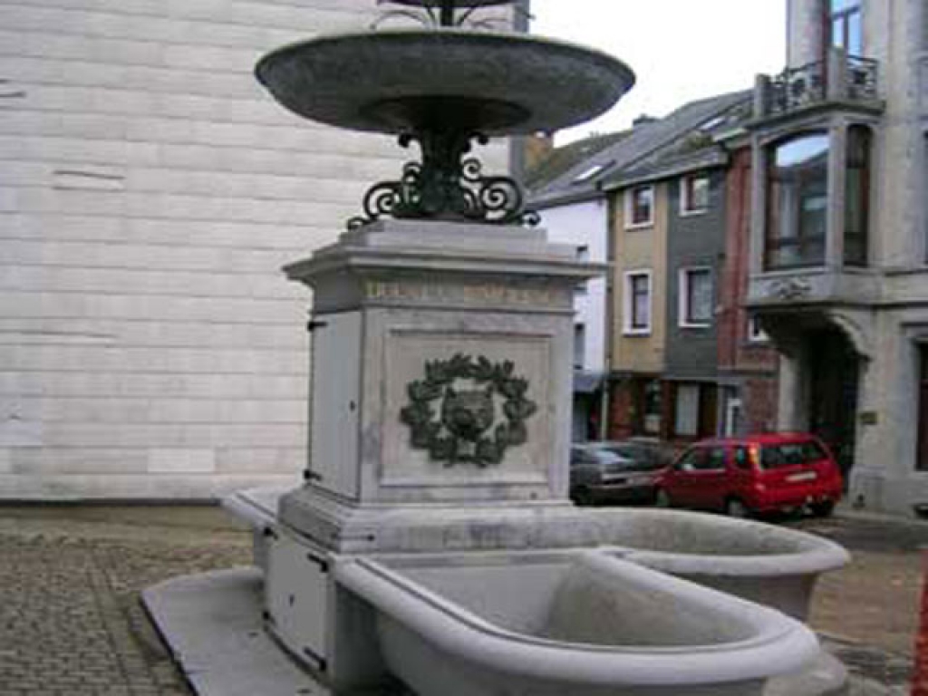 Cette fontaine fut érigée en 1769, sous le règne de Jacques de Hubin, avant-dernier prince-abbé de Stavelot. Elle est surmontée d’un perron, symbole des libertés de la ville.