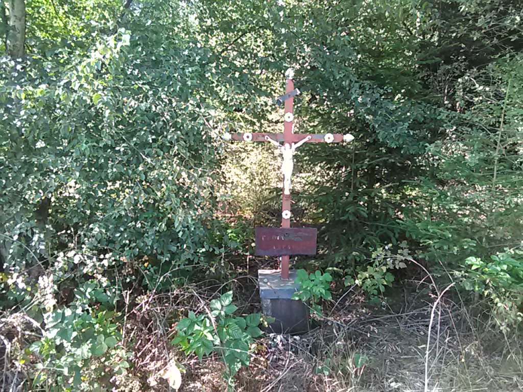 Cette croix en bois, peinte en jaune, a été érigée en souvenir de la mort d’un soldat français l’année de sa mort, en 1812. Elle est entretenue et renouvelée par la propriétaire de la parcelle boisée de sapins.