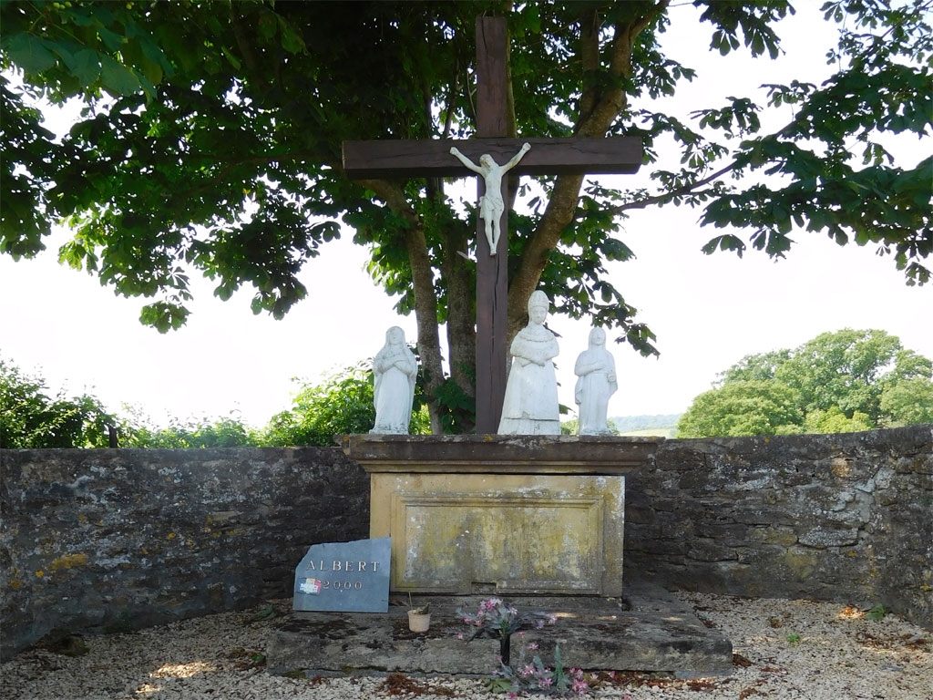 Deze 18de-eeuwse Calvarieberg werd waarschijnlijk opgericht door Etienne Danloup en Odile Genin, de dochter van de molenaar van Radru, uit dankbaarheid voor een volbrachte genade: de komst van een kind. Het waren herbergiers in het dorp.