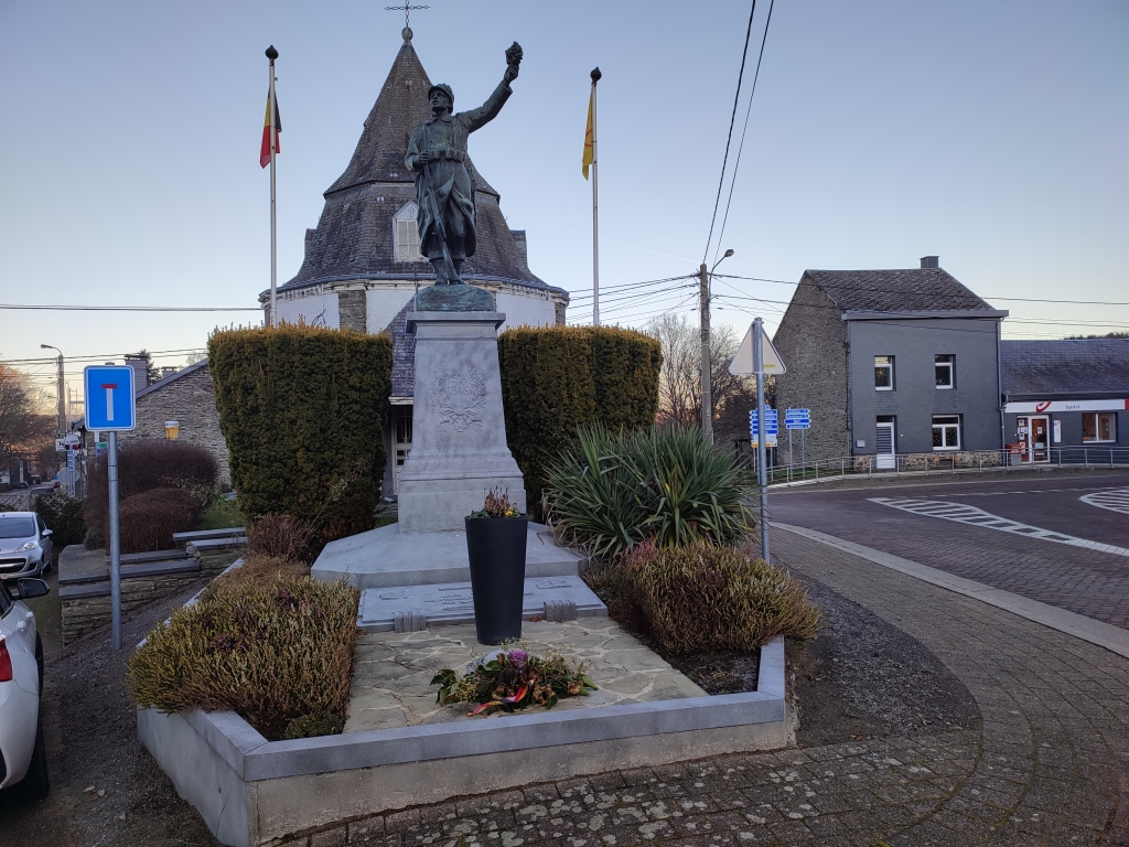 Dit monument, ontworpen door architect J. Bourguignon de Spa en vervaardigd door O. Devechis de Lierneux, is gewijd aan de doden van de twee oorlogen.