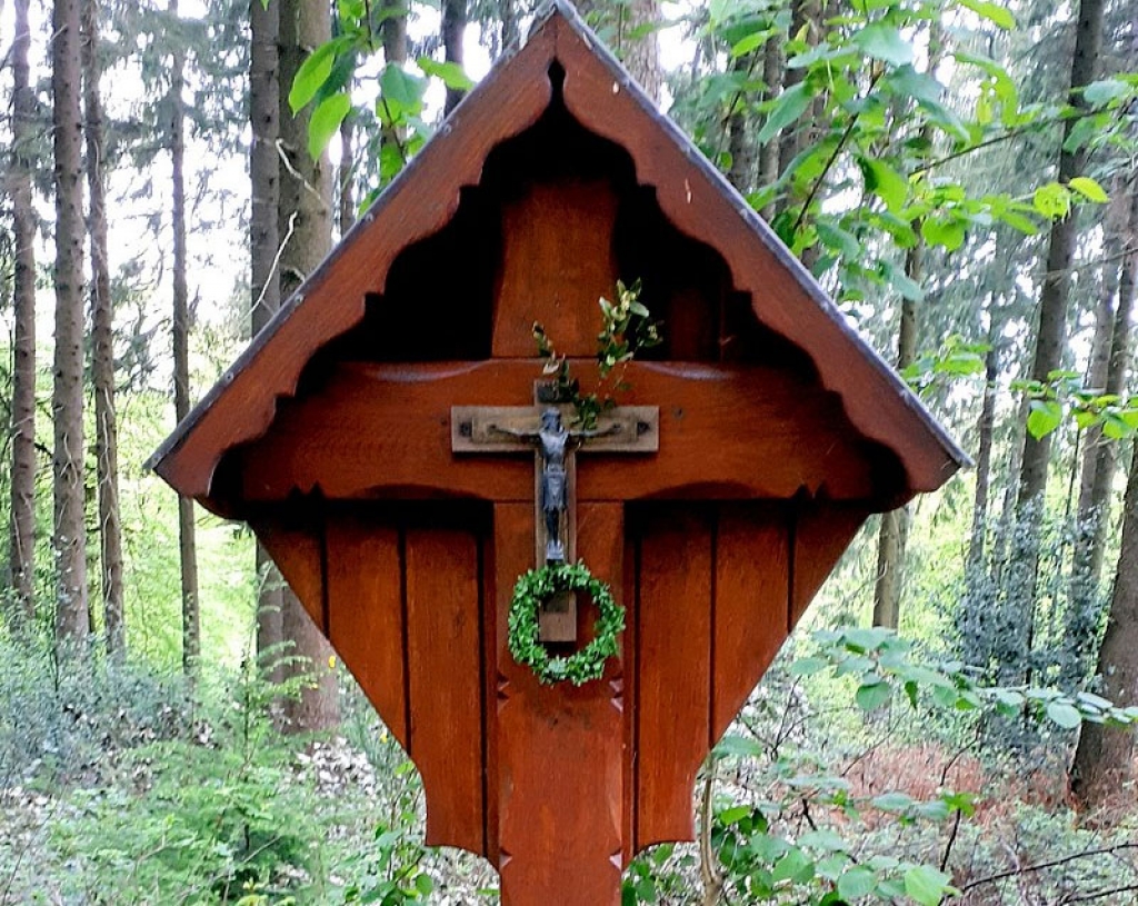 Il s’agit d’une croix de carrefour située en plein coeur du Bois de Prusse, à 2 km du point des Trois frontières.