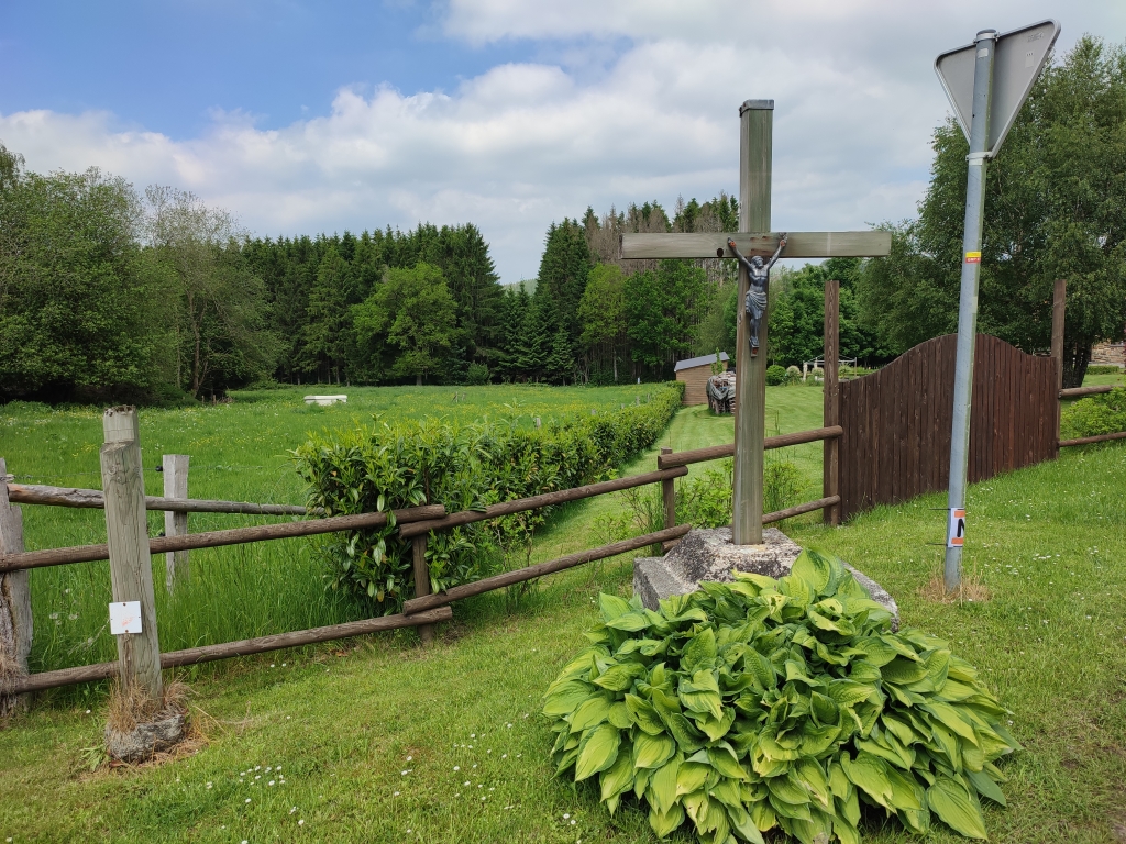 Dit Latijns kruis met een leistenen basis, 1,30 m hoog, bevindt zich aan de voet van Thier de Regné, op de kruising van de weg van Bihain en een kampad. Het bevat het motto : "LOUE SOIT JESUS-CHRIST AINSI SOIT-IL".