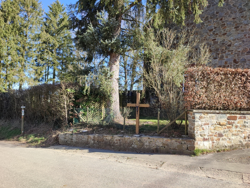 Devant l’ancienne maison communale, une nouvelle grande croix en bois.
