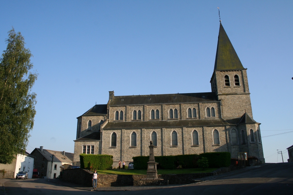 Deze kerk in neogotische stijl werd tussen 1907 en 1909 gebouwd naar plannen van architect Edouard Van Gheluwe. Het bestaat uit een schip met 3 zijden en een breed transept. Het nachtkastje is met 3 kanten en heeft een hoge toren ervoor.