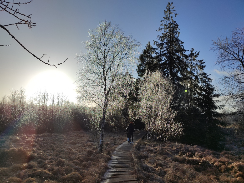 Cette petite promenade est purement familiale et vous emmène, depuis la Baraque Michel, aux sources de la Hoëgne (appelée Polleur ou Poleûr, jusqu’à sa confluence avec le Ruisseau d’Herbôfaye) dans une tourbière aménagée avec des caillebotis et des panneaux didactiques.